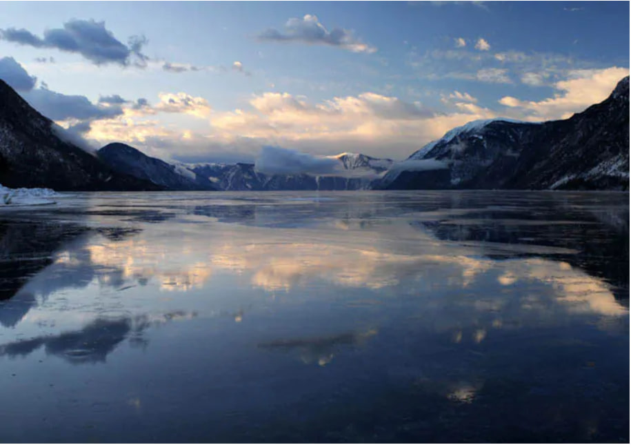 выраваясь из скальных щёк, смиряет свой бешенный нрав, отражая пологие склоны в зеркальной