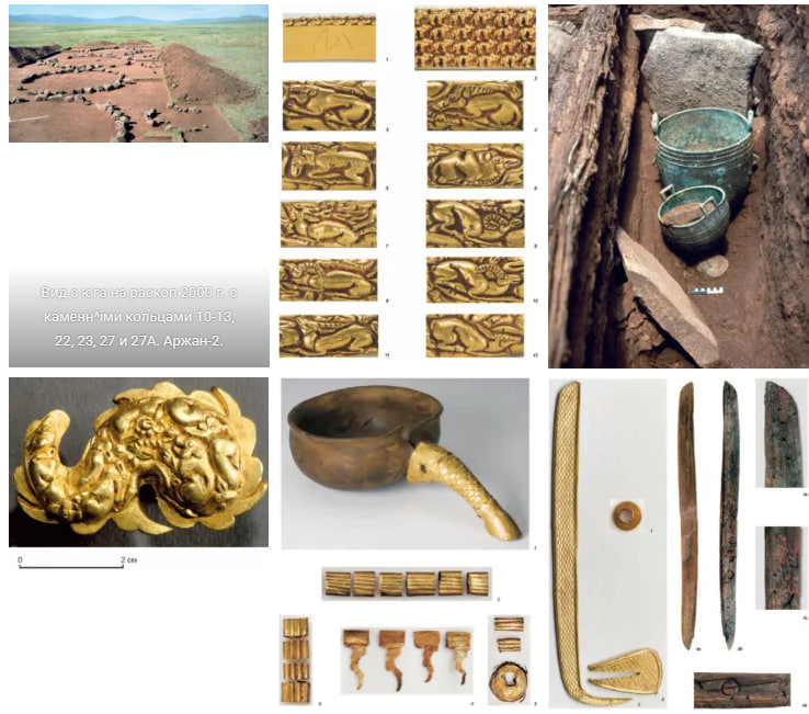 Представлены материалы кургана Аржан-2 исследованного совместной Российско-германской экспедицией под руководством авторов. Аржан-2 - одно из грандиозных сооружений, усыпальница представителей элиты народа, населявшего территорию современной Тувы в ранне-скифское время. Методически безупречно изученный комплекс содержал ряд захоронений, среди которых особенно поражает своим богатством погребение содержавшее серию высокохудожественных предметов, выполненных из золота, в ряде случаев - уникальных. В научный оборот вводится весь корпус полученных материалов. Многочисленные источники были подвергнуты мультидисциплинарному анализу, проведенному коллективом исследователей из России и Германии.