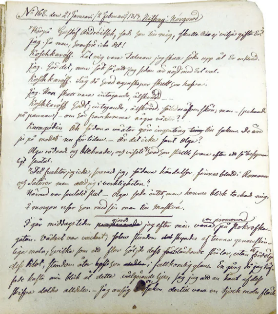 Рис. 2. Страница дневника с записью № 168 от 21 января (2 февраля) 1813 года.