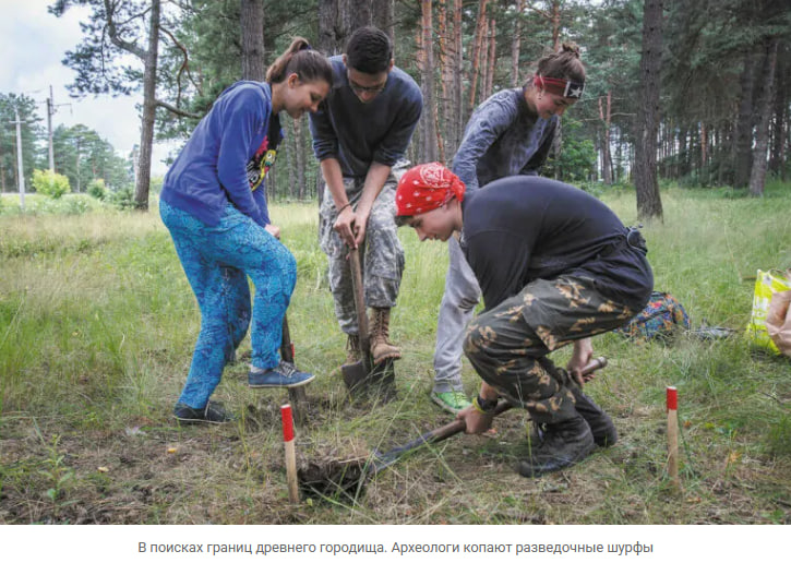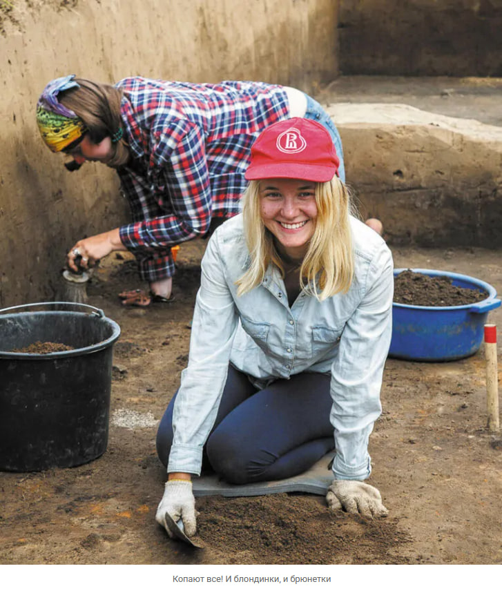 лопатами доходят до культурного слоя - почвы, сформированной жизнедеятельностью человека.