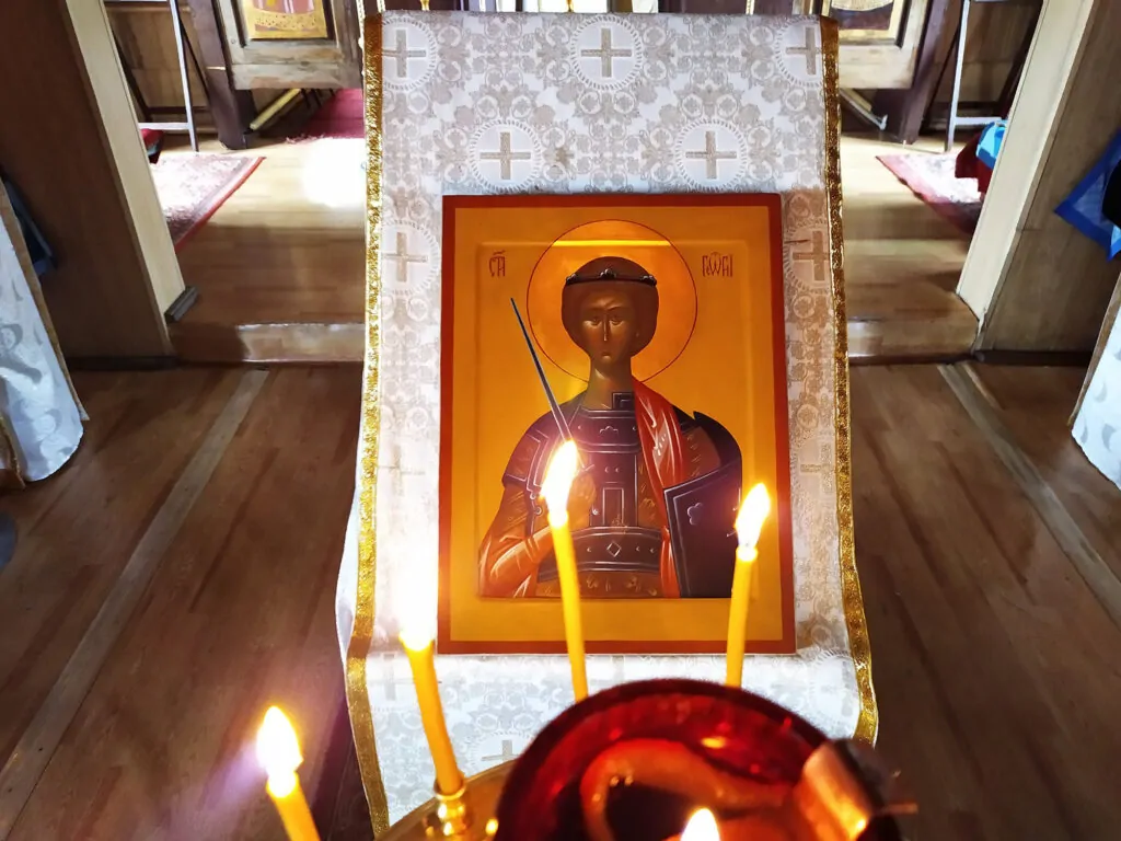 Икона св. влмч. Георгию в Кызыле. Храм в Кызыле назван в честь св. влмч. Георгия, Престольный праздник отмечается ежегодно 6 мая.