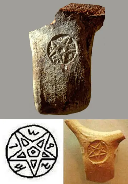 Древнейшее документальное подтверждение использования пятиконечной звезды приходится на государства Шумера найдено на месте древнего города Ур в Месопатамии и датировано 3500 годом до н.э. В их письменности такая пиктограмма обозначала угол, маленькую комнату, яму.