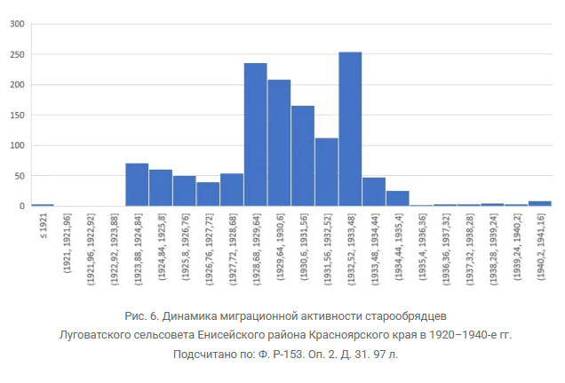 внутрирегиональной мобильности, староверами осваивались незаселенные участки таежной Сибири.
